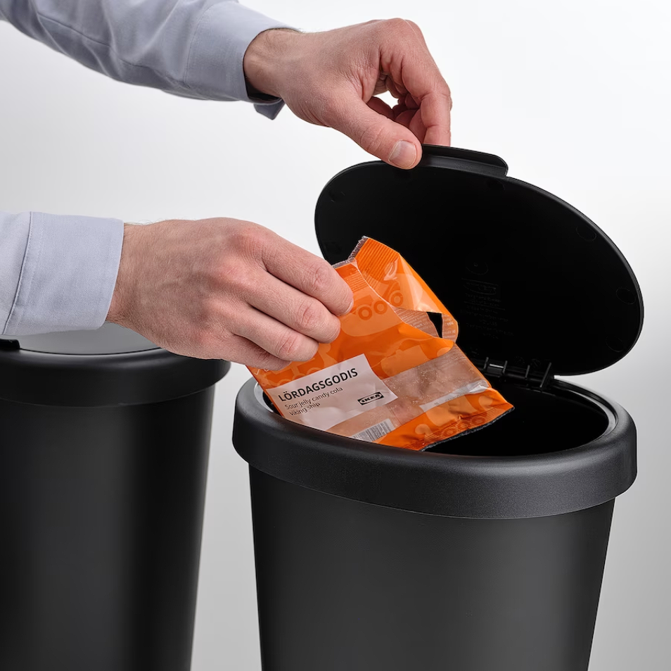 Thanks to the small openings in the top edge of the bin, you can fix 2 bags in place at the same time – or have one bag for wet waste in one half and use the other part for dry waste, without a bag.